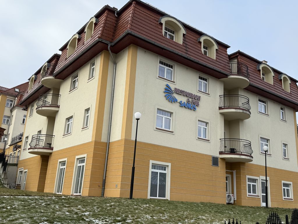 Das Hotel Sanus wird einziges Hotel in Bad Flinsberg mit kompletter Behandlungsbasis. Dies betrifft auch Radonanwendungen, die auf Basis des zertifizierten Radonwassers aus der Quelle vorbereitet werden, sowie die Moorumschläge. Die Behandlungsbasis wird darüber hinaus mit Jaccuzzi sowie Sauna ausgestattet und über komfortable Behandlungsräume verfügen. Alle Räumlichkeiten werden aus ökologischen und nutzerfreundlichen Naturstoffe ausgeführt.
