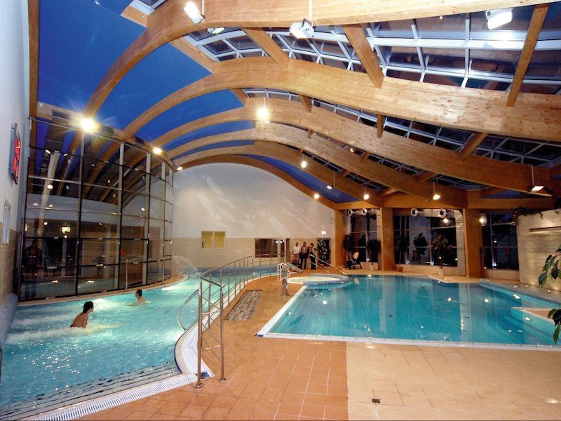 DZ, EZ und Suite (Wohn- und Schlafraum) verteilt sind. Zur Verfügung stehen: ein großzügiger, moderner SPA- und Wellnessbereich mit Schwimmbad, Erholungsbecken, Unterwasserliegen, Whirlpool, Kneipppfad, Sauna, Salzgrotte sowie ein gut ausgestatteter Fitness- und Kraftraum, umfangreiches Behandlungszentrum, Friseur- und Kosmetiksalon, Speisesaal, Café-Bar mit Außenterrasse, Bücherecke mit deutschen Büchern, Lifte (nicht alle Bereiche erreichbar), WLAN, Sommergarten und Parkplatz.